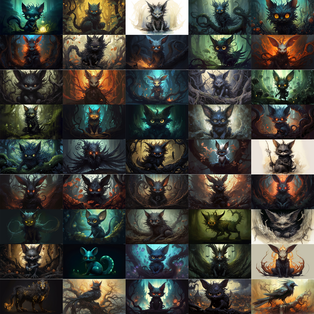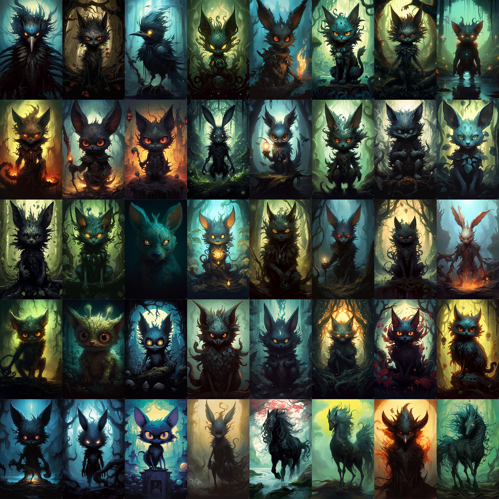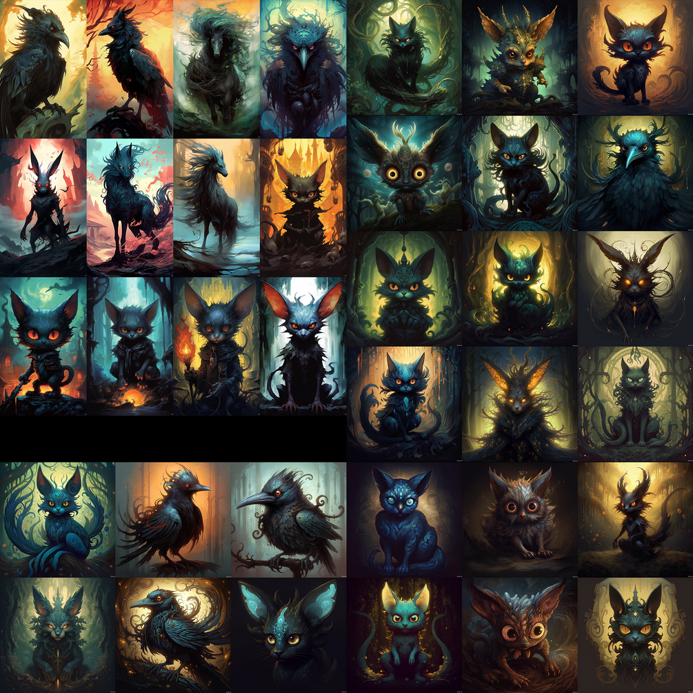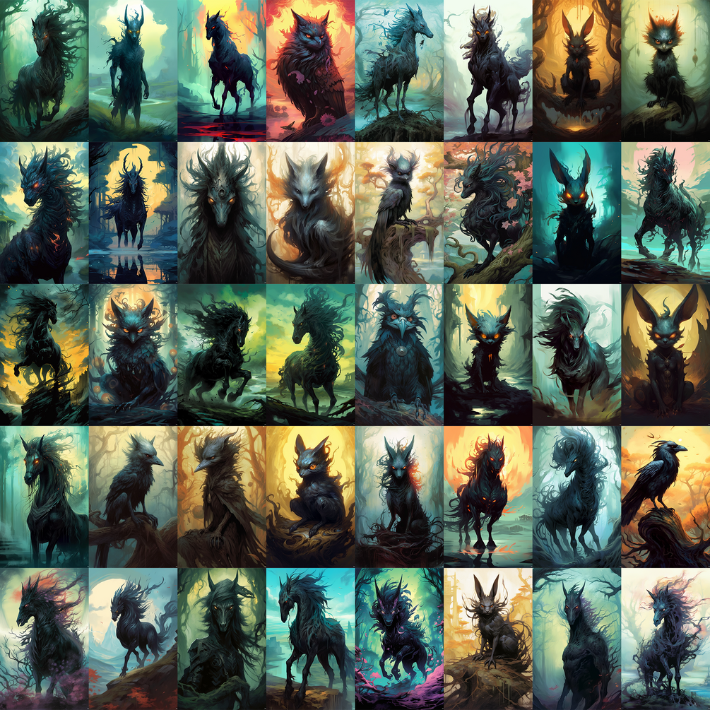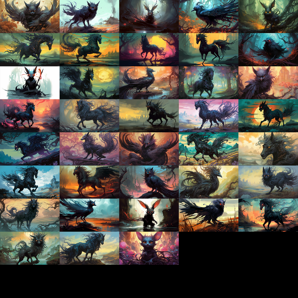 200+ reference images, around 7.9 Gb of Púca, creature from British Isles folklore, generated by MidJourney and upscaled with Topaz Gigapixel AI