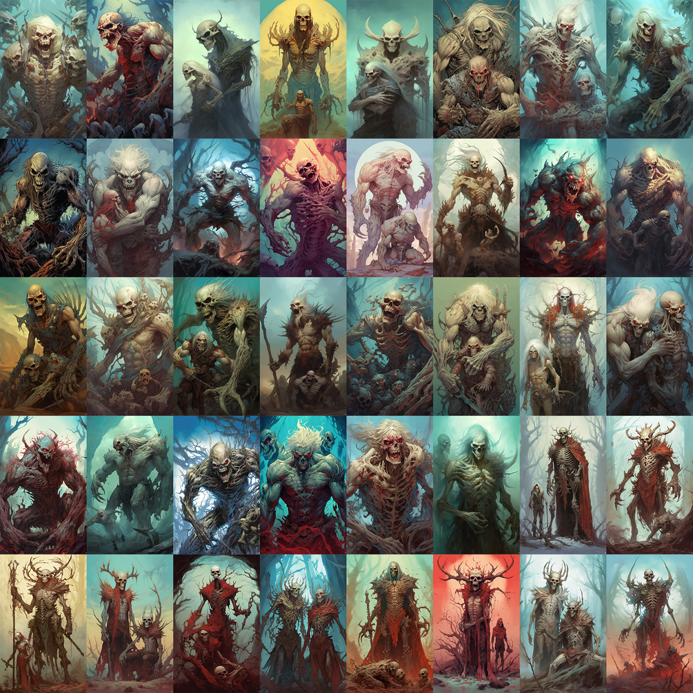 200+ reference images, around 9.2 Gb of Rawhead and Bloody Bones, creature from English folklore, generated by MidJourney and upscaled with Topaz Gigapixel AI