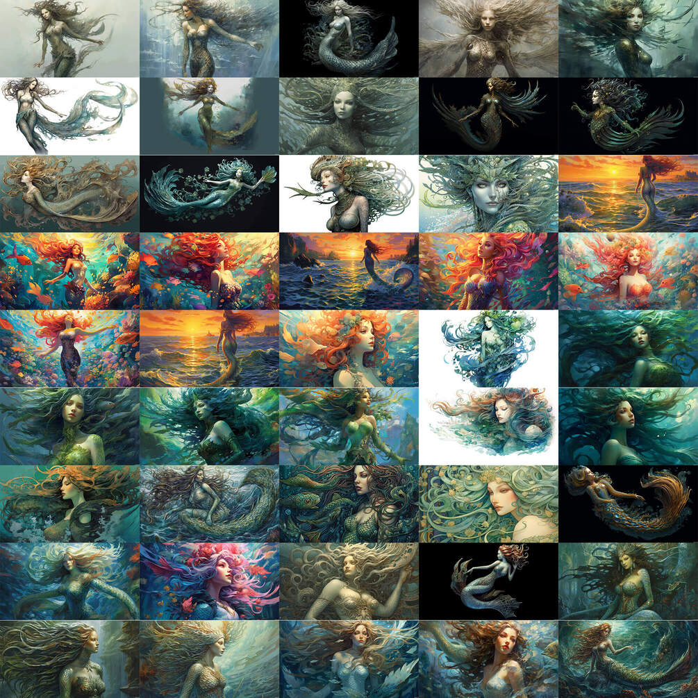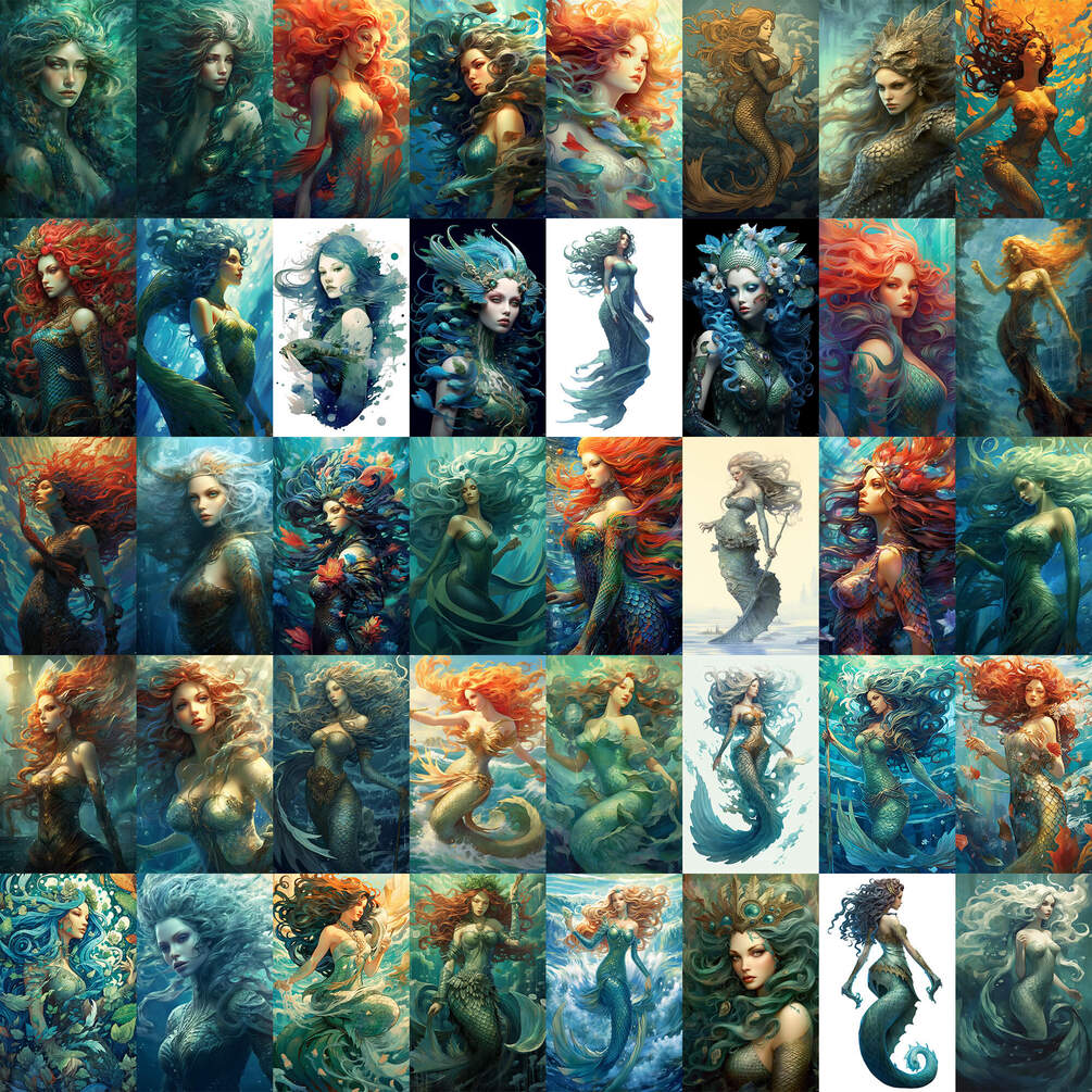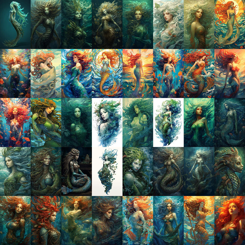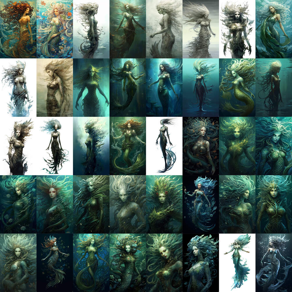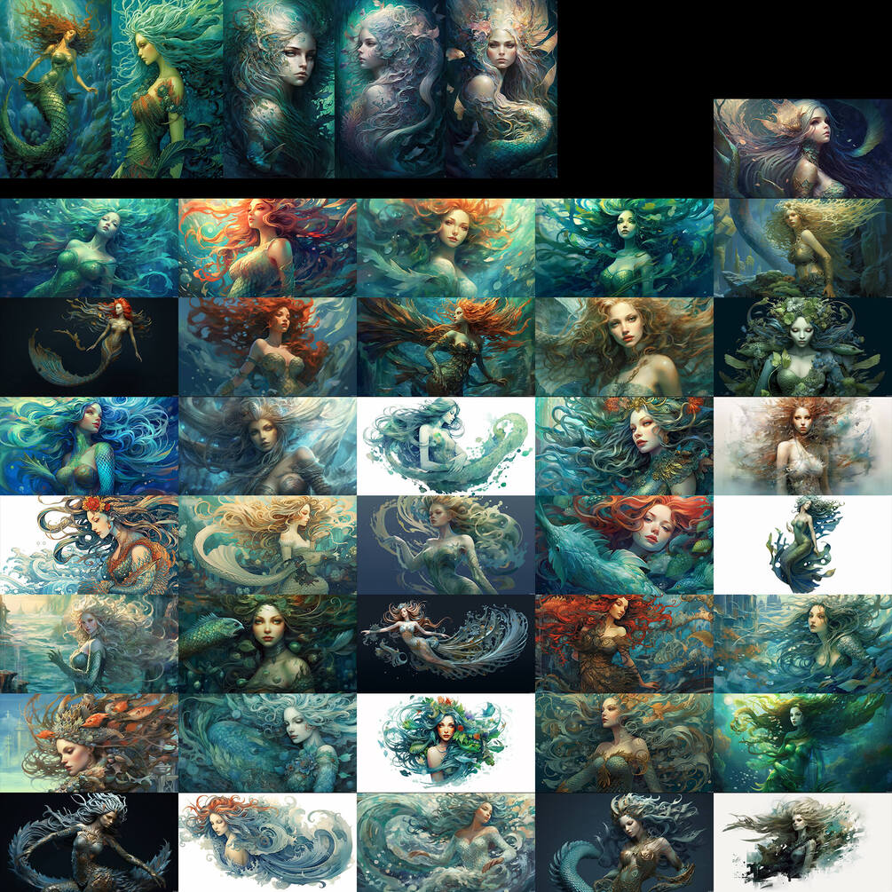 200+ reference images, around 9.6 Gb of Merrow, creature from Irish folklore, generated by MidJourney and upscaled with Topaz Gigapixel AI